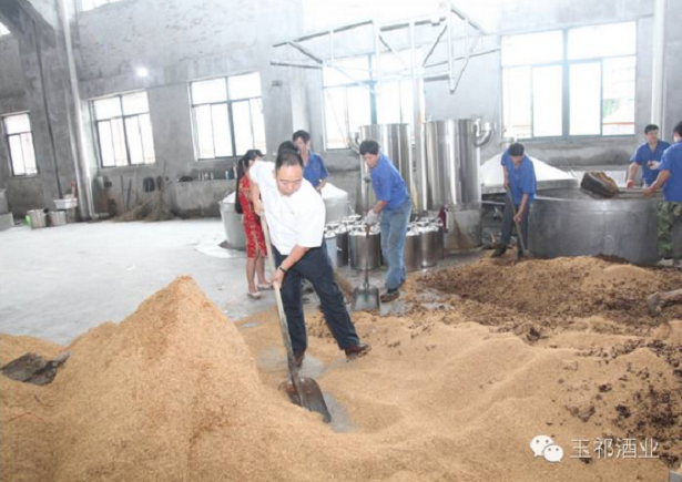 拌 糧。將粉碎的原糧按比例與適量的母糟充分拌勻,再加糠拌勻。(加糠是為了使酒糟蓬松,間隔流通菌種活躍的作用,上甑時(shí)也可以全面的受熱均勻。)