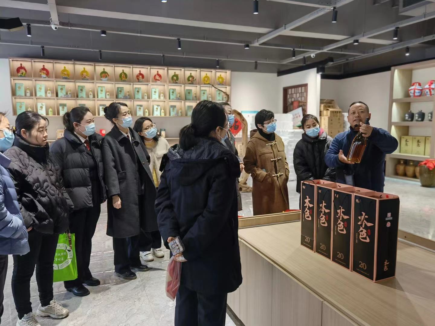 法律服務(wù)團一行來到玉祁酒業(yè)車間,與生產(chǎn)一線的工人師傅親切交流,她們觀看釀酒師傅現(xiàn)場展示白酒釀制技藝,了解生產(chǎn)經(jīng)營情況,向公司相關(guān)管理人員宣傳刑事、民事、行政、公益訴訟等檢察職能,普及《民法典》等法律法規(guī),為企業(yè)發(fā)展提供法治保障。